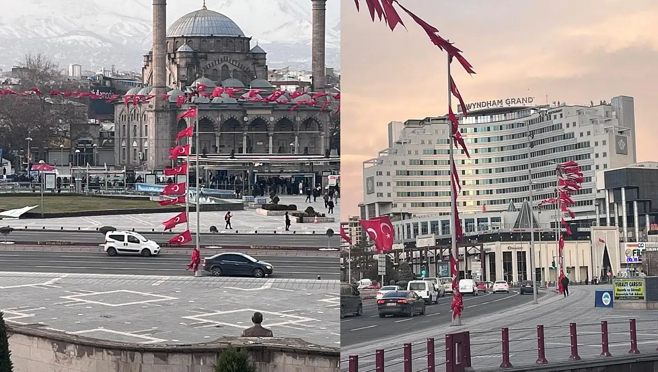 Bir süredir Kayseri Kalesi ve Cumhuriyet Meydanı'nda yer alan direklerde birbirine bağlı olan Türk Bayrakları meydanı süslüyordu. Ancak bugün itibariyle yaşanan yoğun fırtına direklerde asılı olan Türk Bayrakları'ndan bazılarını kopardı. Kopan Türk Bayrakları'nın ardından gözler Büyükşehir Belediyesi'ne çevrildi.