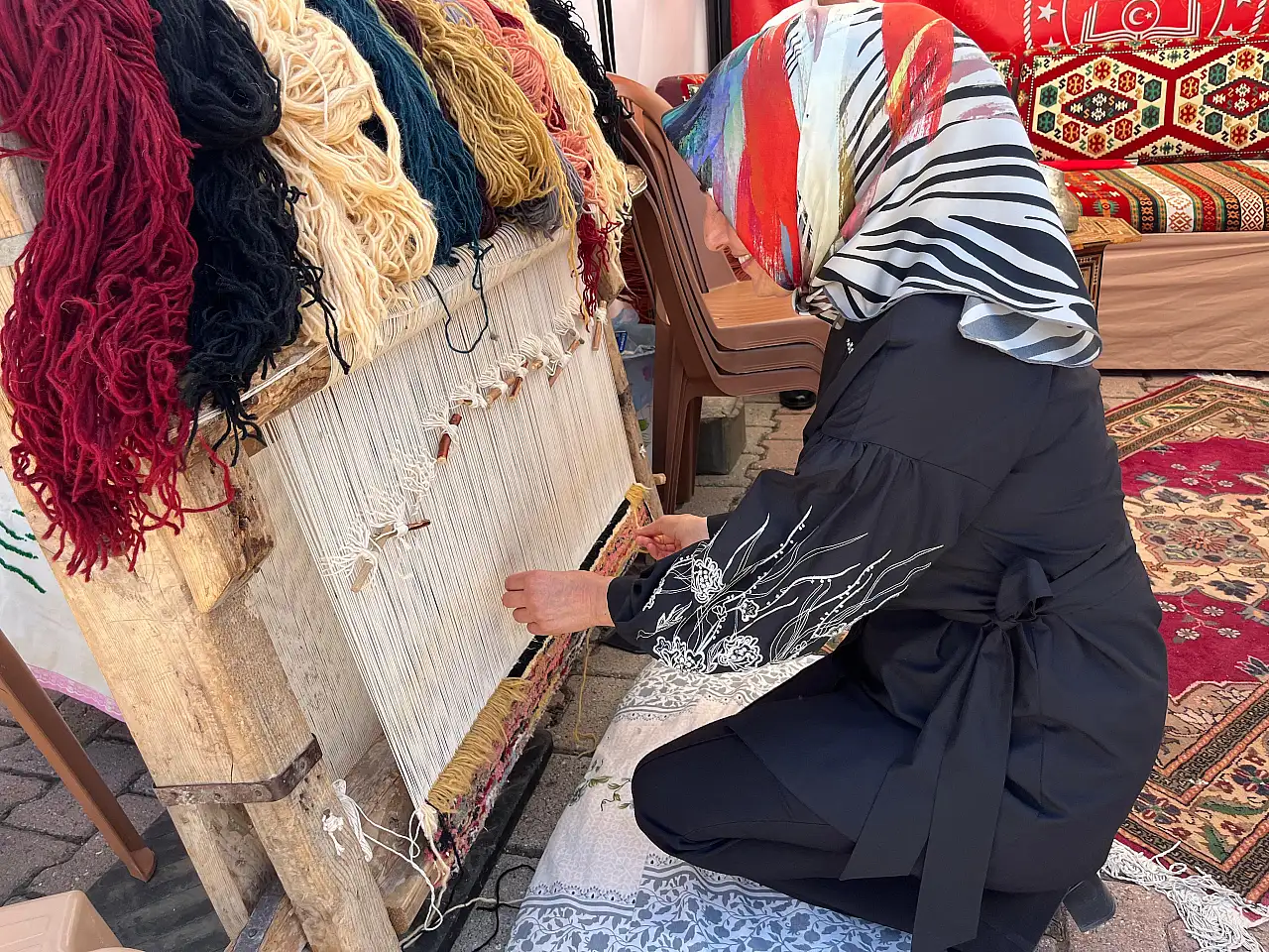 Sevinç, standı ziyaret eden vatandaşlara halı dokuma deneyimi aktarmak istediklerini ve dokumacılığın ilgi gördüğünü söyledi.