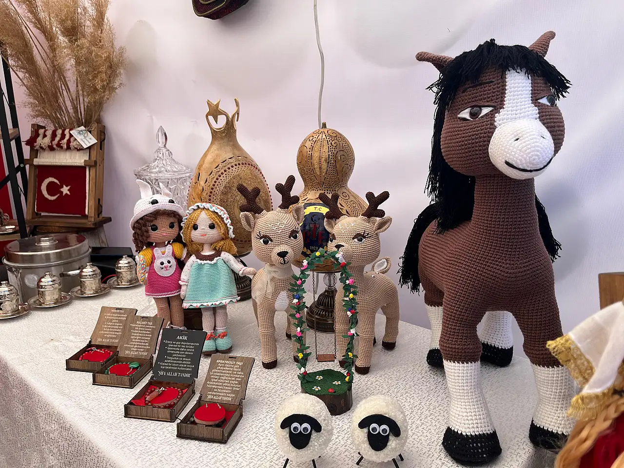 Tığ örücülüğü, su kabağı dokumacılığı ürünlerine de stantta yer verdiklerini dile getiren Sevinç, ‘İnsanların deneyimlemelerine fırsat vererek fark etmelerini gerçek arzu ediyoruz. Mutluyuz. Çünkü tanınmak, bilinir olmak, el birliği kültürümüzü değerlerimizi ayağa kaldırmak bizleri mutlu ediyor. İnsanlarımızla hatta ‘oturup bir düğümde biz atalım.’ Bir düğümde sen at projemize katkı sağlamış oluyorlar.’ diye konuştu.