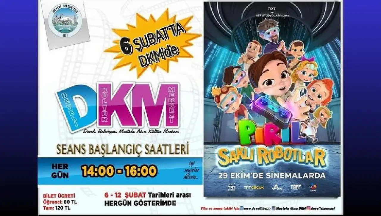 Develi’de çocuklara yönelik özel bir sinema etkinliği başlıyor. TRT yapımı animasyon filmi ‘‘Pırıl – Saklı Robotlar’‘, 6-12 Şubat tarihleri arasında Develi Belediyesi Mustafa Aksu Kültür Merkezi’nde izleyiciyle buluşacak.