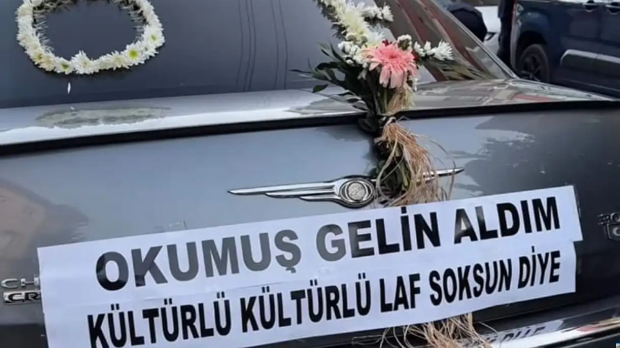 Başka bir düğün aracında yer alan ‘‘Talip olursak alırız’‘ ve ‘‘Geri iadesi yoktur’‘ yazıları ise paylaşılan kareler arasında en çok konuşulanlar oldu.