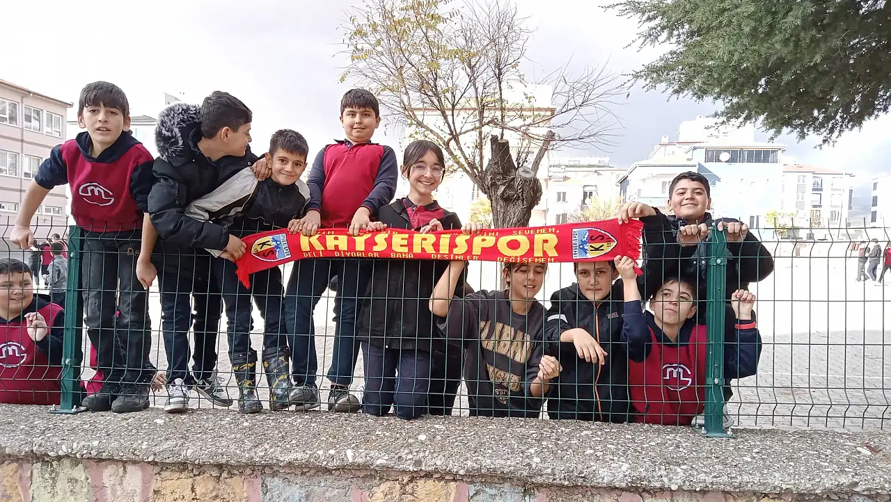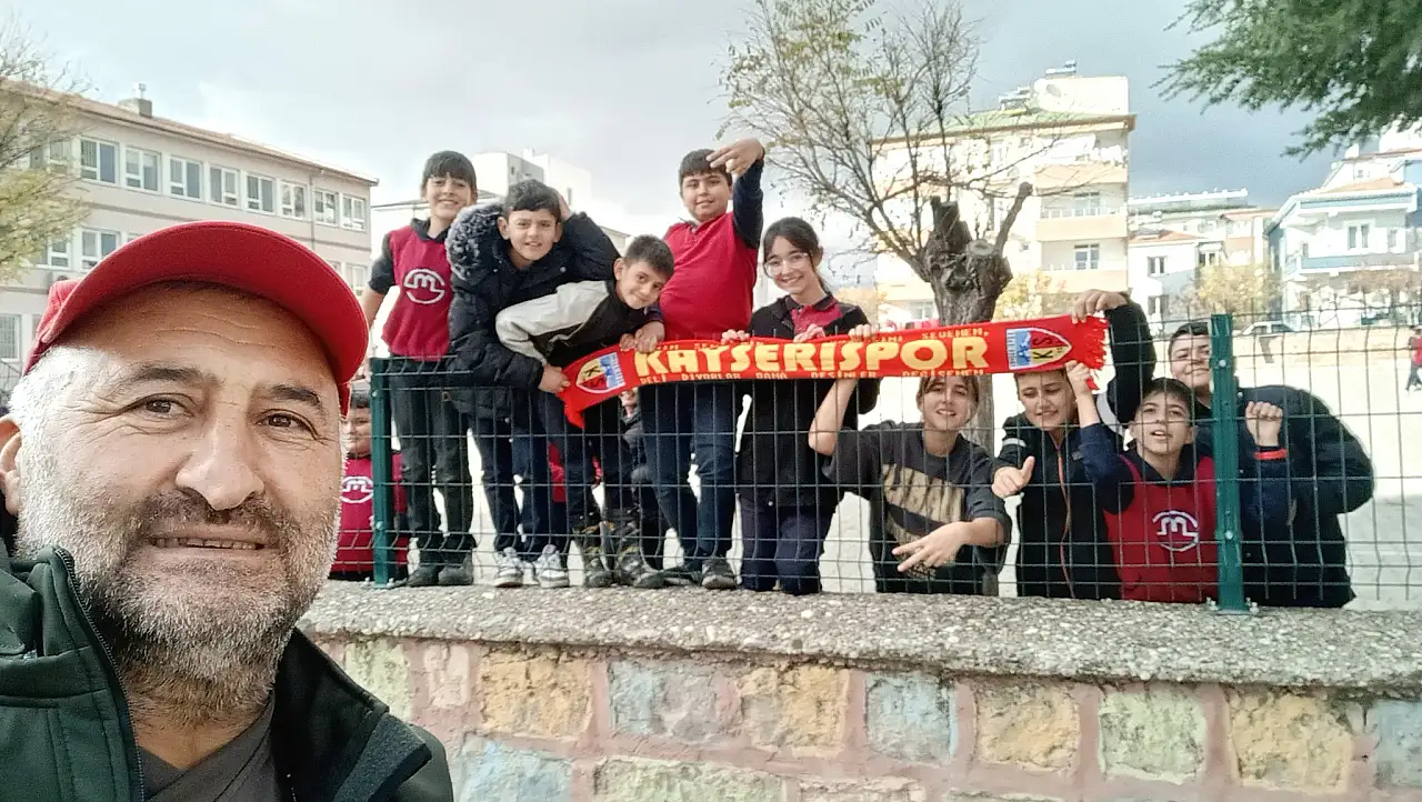 Kayserispor sevdalısı İshak Kattaş, memleketi Develi'de öğrencilere Kayserispor atkısı hediye ederek gönülleri ısıtan bir harekete imza attı.