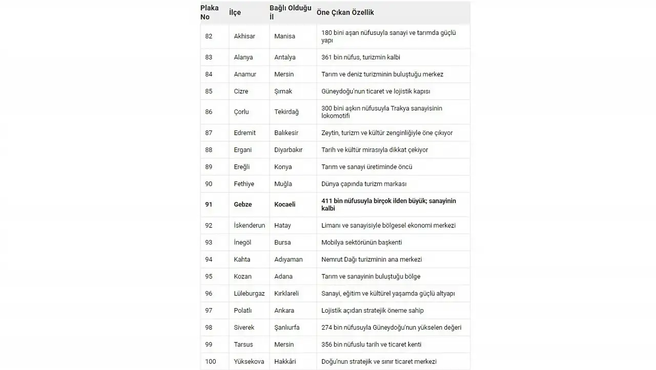 İl olmaya en yakın olarak açıklanan ilçeler arasında Akhisar, Alanya, Anamur, Cizre, Çorlu, Edremit, Ergani, Ereğli, Fethiye, Gebze, İskenderun, İnegöl, Kahta, Kozan, Lüleburgaz, Polatlı, Siverek, Tarsus, Yüksekova gibi nüfusu 100 binin üzerinde olan ve il merkezine en az 30 kilometre uzaklıkta bulunan ilçeler yer alıyor. Bu ilçeler, nüfus ve ekonomik kriterler açısından il olma potansiyeline sahip olarak değerlendiriliyor.