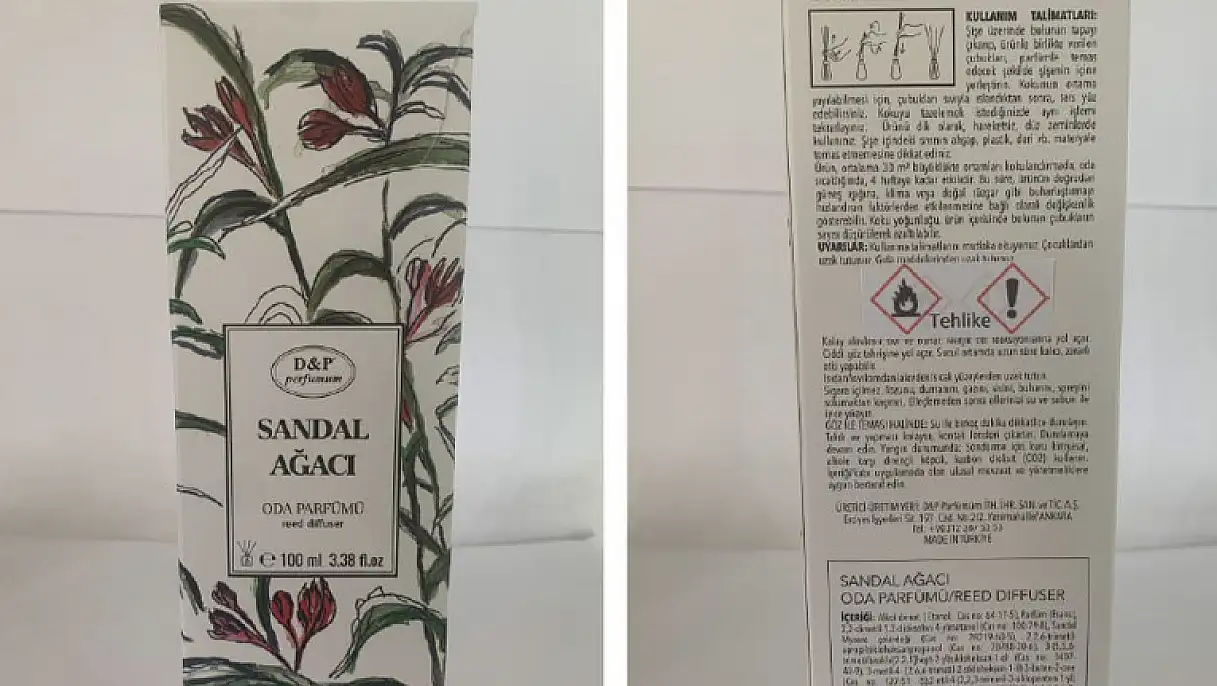 Kayseri’de de şubeleri bulunan D-P Parfümüm İthalat İhracat Sanayi Ve Ticaret Anonim Şirketi’ne ait D&P Sandal Ağacı Oda Parfümü 100 Ml (Barkod:8698544030359) toplatılıyor. Kimyasal, yanıklar, yaralanmalar gibi riskler taşıyan ürünün ambalajında dokunsal uyarı işareti bulunmadığı nedeniyle toplatılıyor.