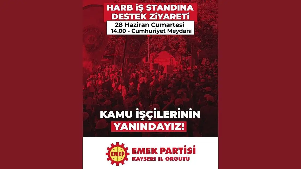 Emek Partisi Kayseri İl Örgütü, ‘‘İnsanca yaşam mücadelesi veren kamu işçilerinin yanındayız’‘ diyerek 28 Haziran Cumartesi günü saat 14.00’te Emek Çadırı’na dayanışma ziyaretinde bulunacaklarını açıkladı. Parti yetkilileri, bu tür eylemlerin emeğe saygı ve toplumsal adalet açısından önem taşıdığını vurguladı.