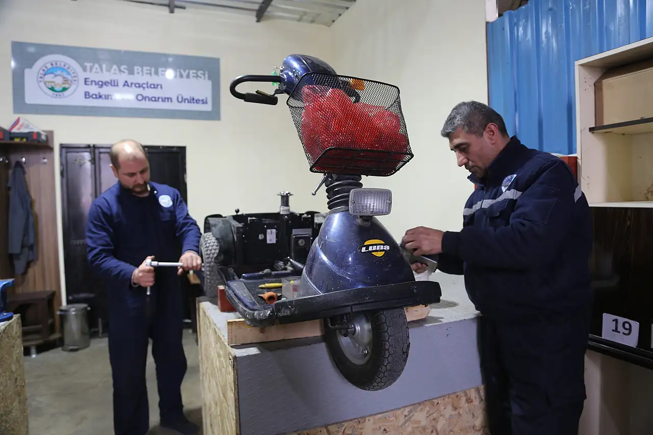 Talas Belediyesi'nin engelli vatandaşların bağımsız hareket kabiliyetlerini güçlendirmek ve yaşam kalitelerini artırmak amacıyla kurduğu Engelli Araçları Bakım ve Onarım Merkezi, engellilerin yüzünü güldürmeye devam ediyor. Detaylar Kayseri Anadolu Haber'de...
