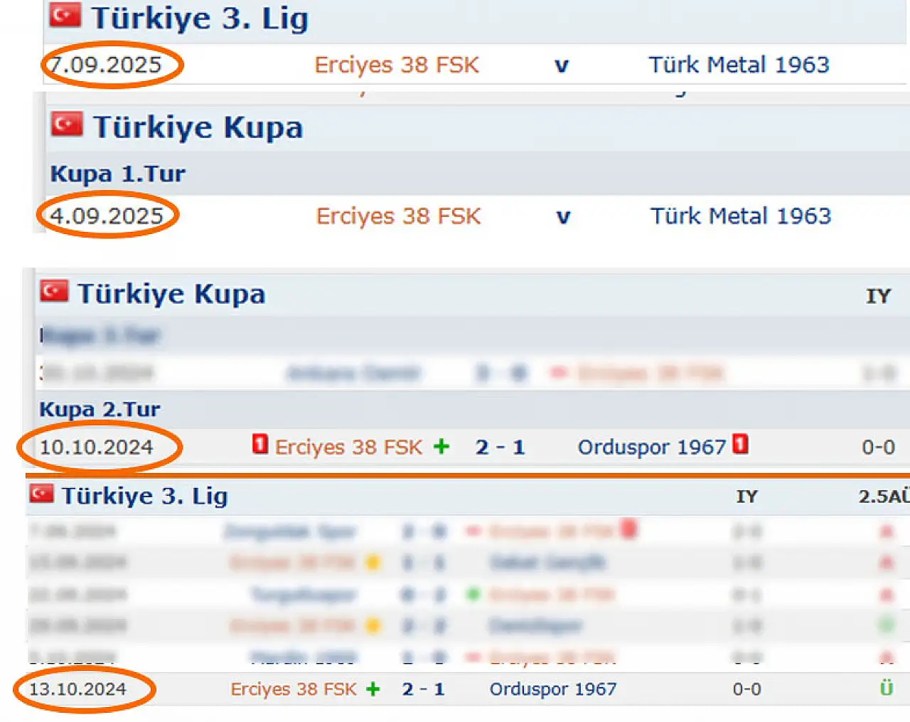 Erciyes 38 FK, geçen sezon da aynı durumu yaşamıştı. Mavi-siyahlı ekip, 10 Ekim 2024 tarihinde Orduspor 1967 ile Ziraat Türkiye Kupası 2. Tur maçında karşılaşmış, 3 gün sonra ise ligin 6. haftasında aynı rakibiyle yine Kayseri’de karşı karşıya gelmişti. Temsilcimiz, kupada rakibini 2-1 yenerek tur atladıktan sonra, ligde de yine aynı skorla kazanmış ve üç puanı hanesine yazdırmıştı.