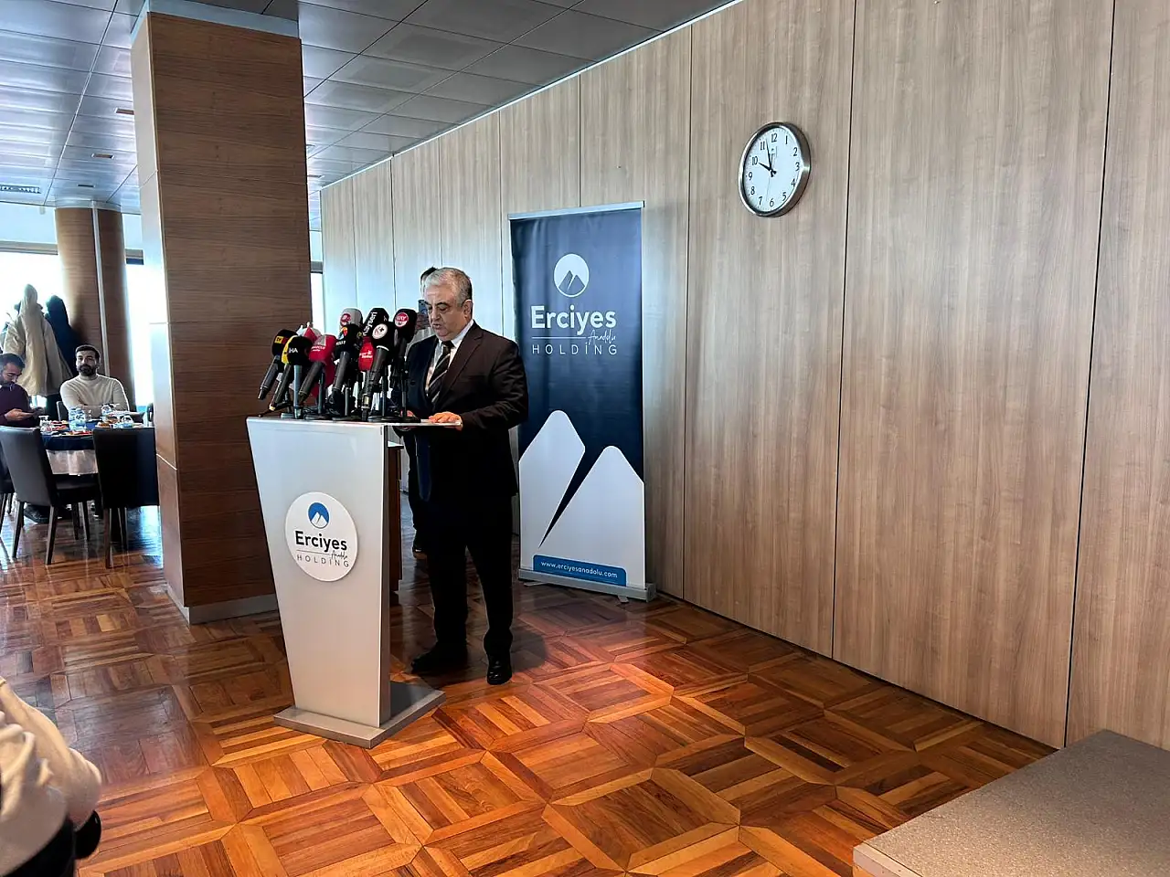 TMSF tarafından yönetilen Erciyes Anadolu Holding’in CEO’su Özcan Özyurt ve Erciyes Anadolu Holding Yönetim Kurulu Başkanı Yusuf Öksüzömer, gazetecilerle düzenlenen basın toplantısında bir araya geldi. Holding CEO’su Özcan Özyurt, ‘Erciyes Anadolu Holding’in Kayseri ekonomisine kattığı değerleri kamuoyuna objektif olarak yansıtan en önemli köprü siz basın emekçilerimizsiniz. Bizim için her biriniz Erciyes Anadolu Holding’in dış dünyaya açılan penceresisiniz. Bu pencereden her zaman doğrunun, emeğin ve başarının görülmesi bizim en büyük önceliğimizdir. Yanlışlarımız olursa bunu da elbette göz ardı etmeyin’ diye konuştu.