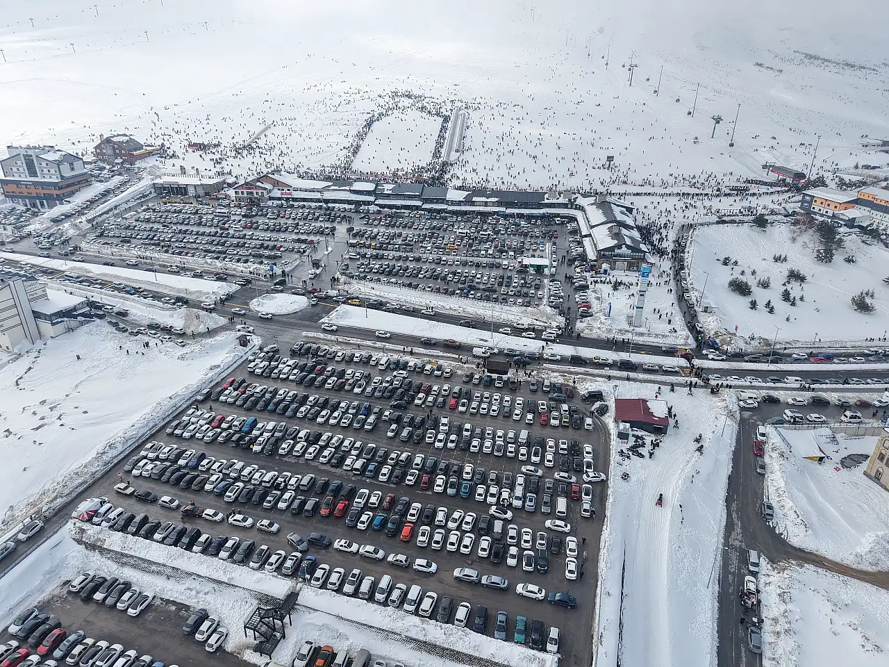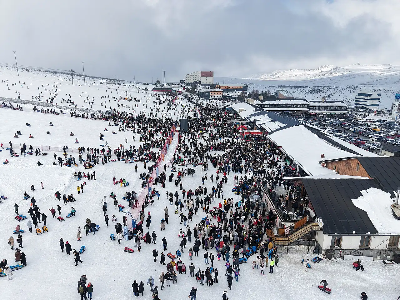 Kayseri’de gözde kayak destinasyonlarından Erciyes Kayak Merkezi, sömestirin ikinci hafta sonunda 320 bin kişiyi misafir etti. Kayak merkezindeki yoğunluk havadan görüntülendi.