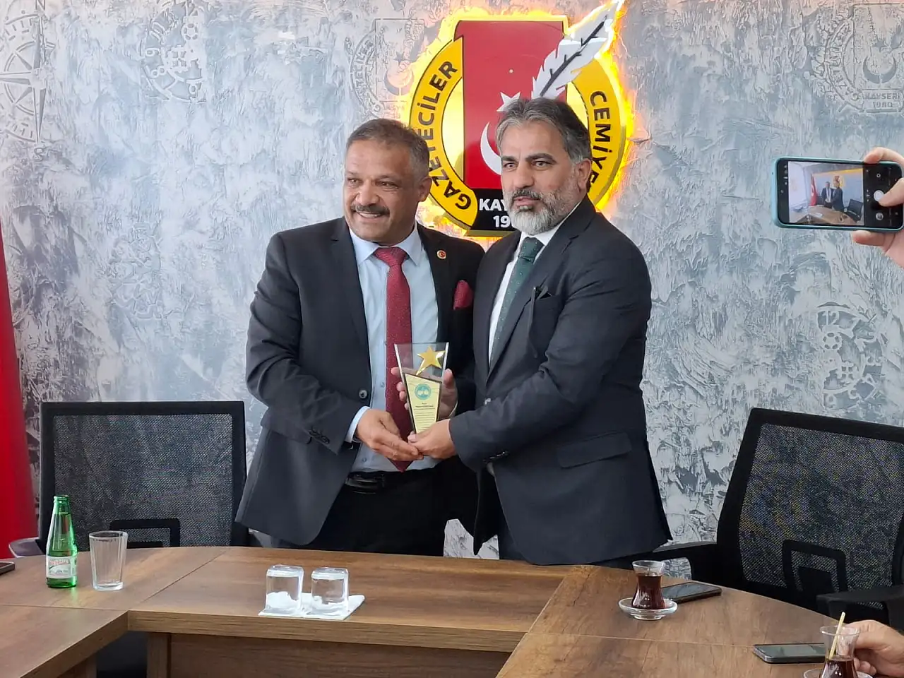 Avrupa Kayserili İşverenler Birliği Genel Başkanı Ali Hızar, Kayseri temasları kapsamında Kayseri Gazeteciler Cemiyeti’ni ziyaret etti. Cemiyet Başkanı Metin Kösedağ ile samimi bir ortamda gerçekleşen buluşmada, Hızar hem Avrupa’daki faaliyetlerini anlattı hem de yeni projelerin müjdesini verdi.