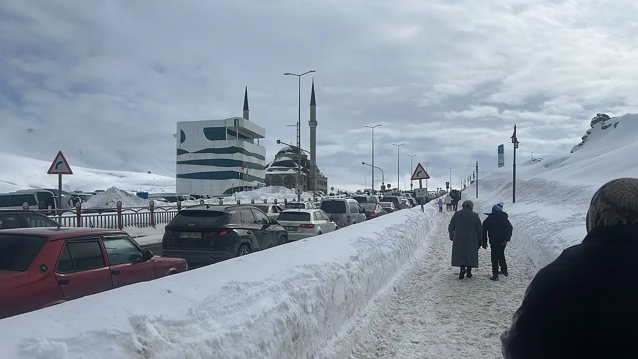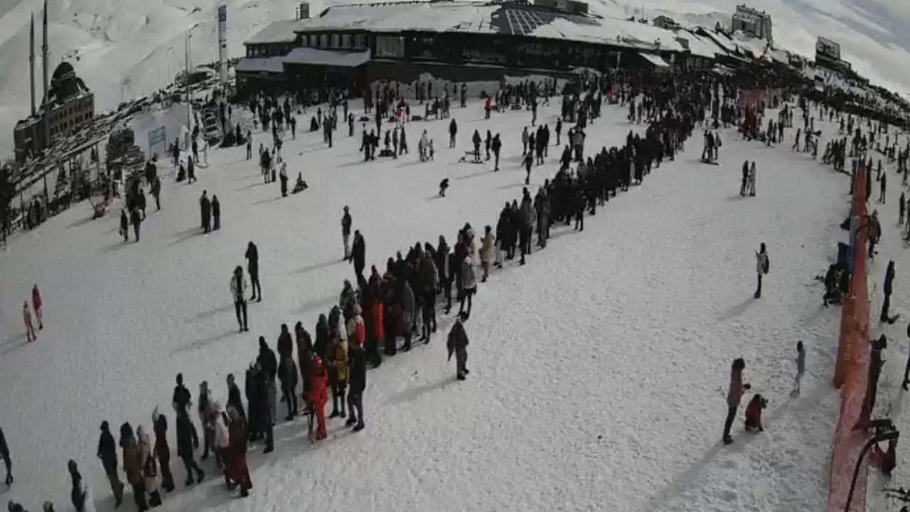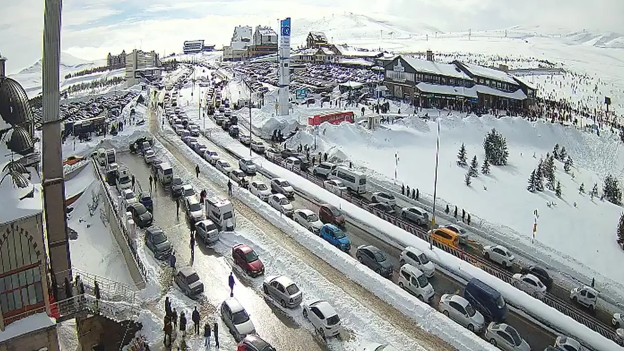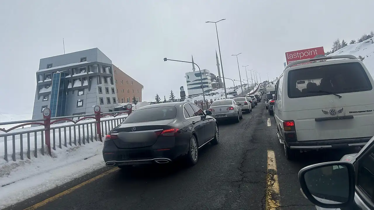 Erciyes'te kar tanesi düşecek yer kalmadı: Otopark sırası boydan boya uzandı!