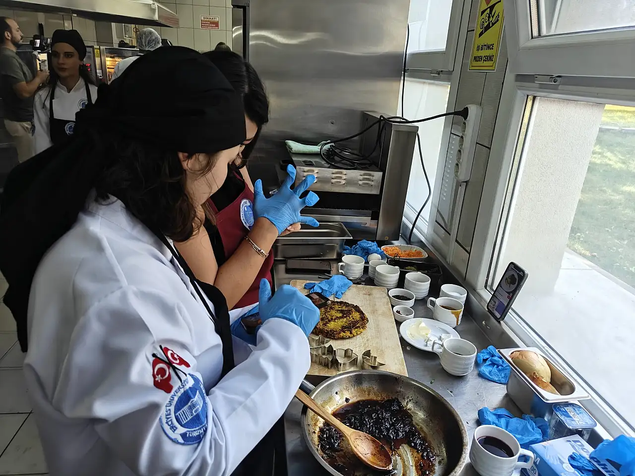 ERÜ Turizm Fakültesi Dekan Yardımcısı Dr. Öğretim Üyesi Mustafa Ülker, 'ERÜ Turizm Fakültesi Gastronomi ve Mutfak Sanatları Bölümümüz 2025-2026 öğretim yılında ilk kez öğrenci aldı. İlk öğrencilerine kavuştu. Çok heyecanlıyız. Fakültemiz kurulduğundan beri Gastronomi ve Mutfak Sanatları Bölümü’nü bekliyoruz. Öğrencilerimiz de çok yüksek derecelerle geldiler. Onların gözündeki ışığı gerçekten görüyoruz ve umuyoruz ki 4 sene bittikten sonra bu öğrencilerimizi yiyecek ve içecek sektörümüzün muhtelif alanlarında iyi birer yönetici olarak göreceğimize inanıyoruz. Bugün aynı zamanda bir açılış dersi ve açılış yarışması da yaptık. Şehrimizde bulunan sosyal medya fenomenlerini bir yemek yarışması çerçevesinde toplayarak, onlarla bir değerlendirmeye tabi tuttuk. Gastronomi ve Mutfak Sanatları Bölümü hem Türkiye’de hem dünyada revaçta olan bir alan. Günümüzde düzenlenen etkinliklerin çok önemli bir kısmı gastronomiyle gerçekleşiyor. Bu akımı Türkiye de yakalayan ülkelerden bir tanesi. Gastronomi bölümü revaçta. Ben gelecek öğrencilerimize bu bölümü tercih etmelerini tavsiye ediyorum' dedi.