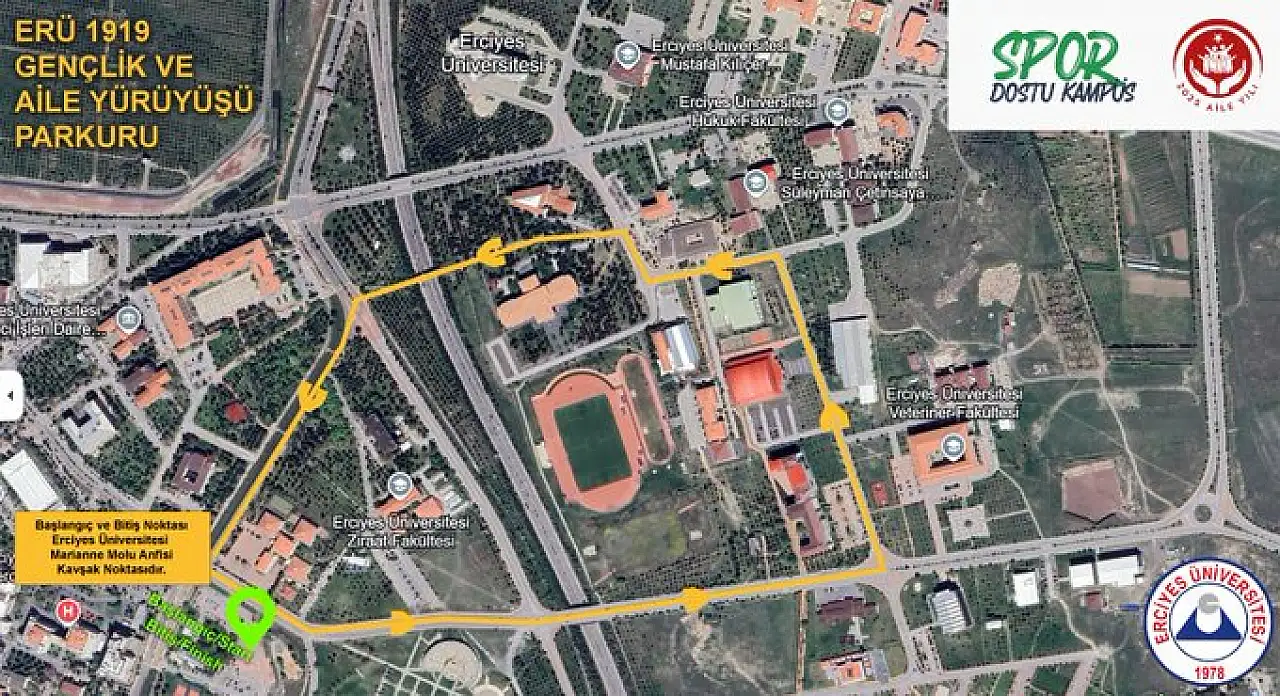 Etkinlik programı kapsamında düzenlenecek ERÜ 1919 Gençlik ve Aile Yürüyüşü 19 Mayıs Pazartesi günü saat 11.00’de gerçekleştirilecek. Molu Amfisi Kavşağı’nda başlayacak ve aynı noktada sona erecek.