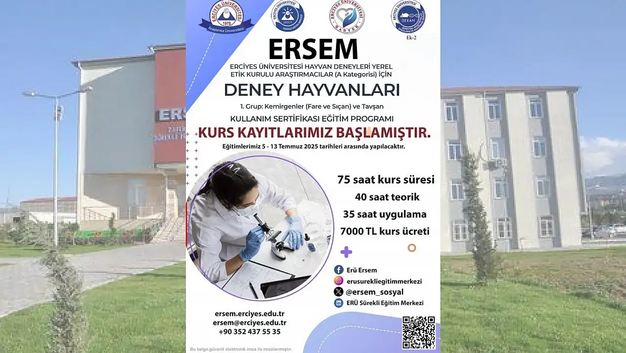Erciyes Üniversitesi bünyesinde hizmet veren ERSEM, 'Deney hayvanları' kursunun kayıtlarının başladığını duyurdu. Kursun amacı nedir? Kimler katılım sağlayabilir? Detaylar Kayseri Anadolu Haber'in Kayseri haberinde…