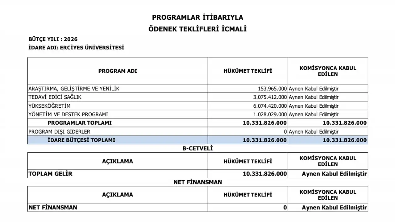 - Erciyes Üniversitesi'nin 2026 yılı bütçesi belli oldu: Milyarlarca lira aktarılacak!