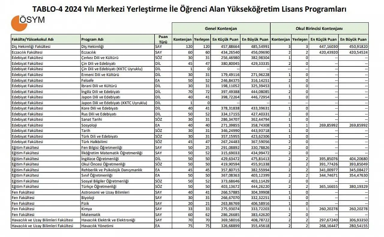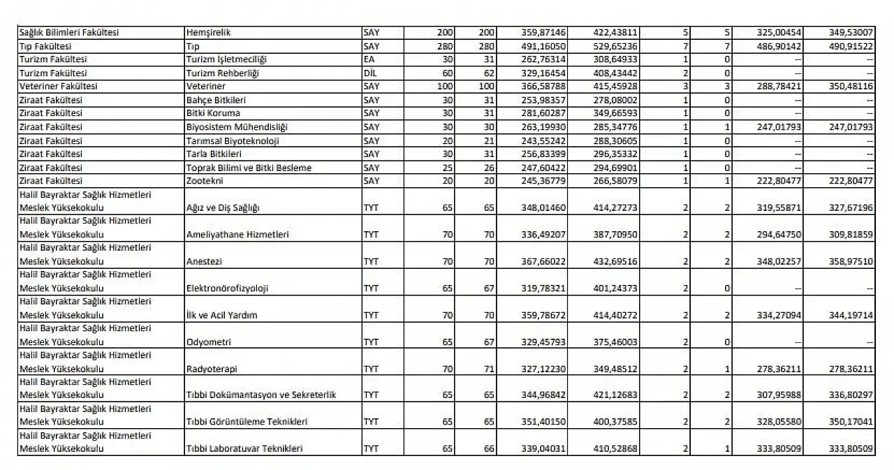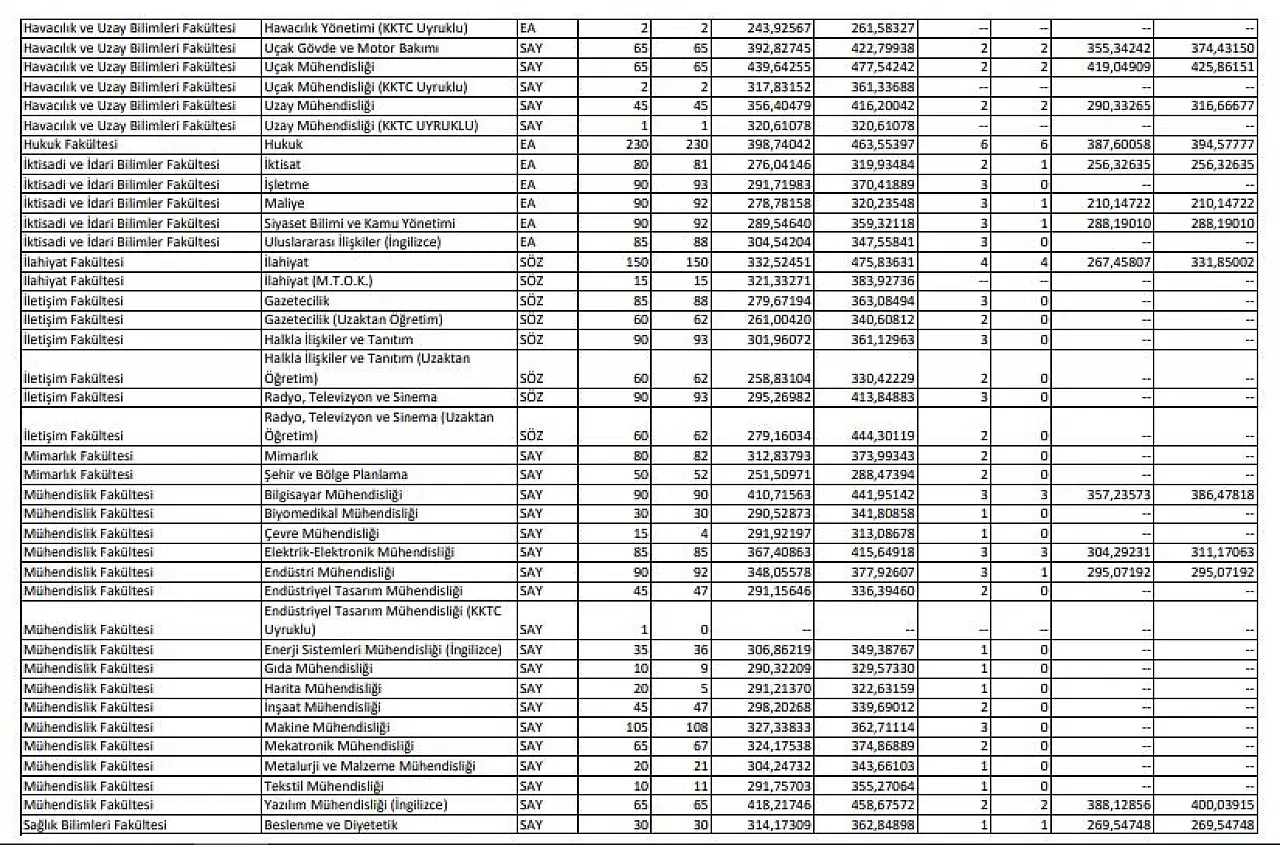 2025 Erciyes Üniversitesi taban puanları, başarı sıralamaları ve kontenjanları için bekleyiş sürüyor. 2024 yılının puanları ise şu şekilde,