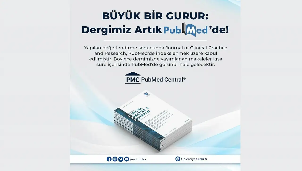 Erciyes Üniversitesi Tıp Fakültesi tarafından yayımlanan Journal of Clinical Practice and Research dergisinde yayınlanan tüm bilimsel makaleler, dünyanın en büyük tıp veri tabanlarından biri olan PubMed üzerinden erişilebilir hale geldi. Bir makalenin PubMed’de yer alması, onun yalnızca Türkiye’de değil, dünyanın her yerinde görünür olması anlamını taşımaktadır.