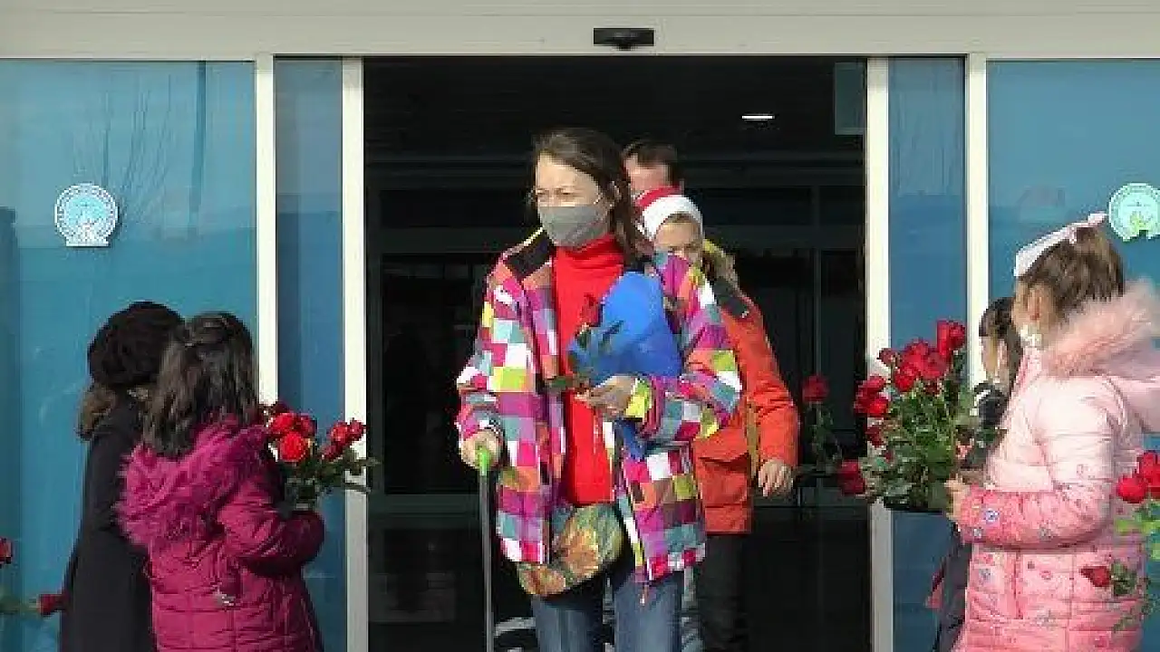 Diğer yandan havaalanından çıkan Ukraynalı bir turist kadın da kendisine gül vererek karşılayan çocuklara şeker dağıttı.