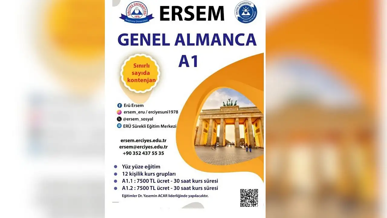 Erciyes Üniversitesi Sürekli Eğitim Merkezi (ERSEM), Almanca öğrenmek isteyenler için Genel Almanca A1 seviyesinde yeni bir kurs programı başlattı.