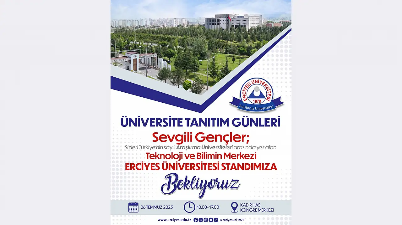 Üniversiteden yapılan açıklamada, ‘Teknoloji ve bilimin merkezi Erciyes Üniversitesi olarak siz değerli gençleri standımıza bekliyoruz. Gelin, geleceğinize birlikte yön verelim.’ denildi.