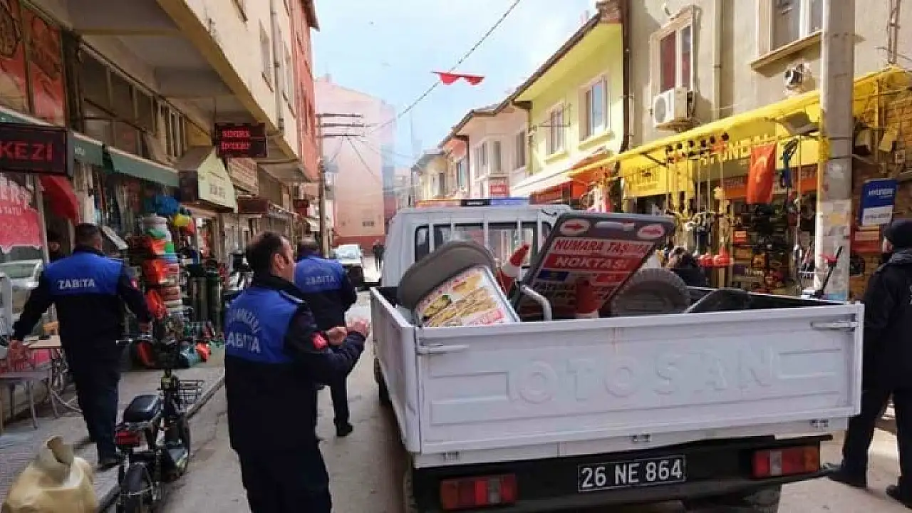 Eskişehir’de Odunpazarı Belediyesi zabıtası vatandaşların kaldırımlarda rahatça yürüyebilmesi için denetime çıktı. Zabıta ekipleri önlerine çıkanı ‘Terk edilmiş her şey kamunundur’ diyerek yaya yolunu işgal eden esnafın bıraktığı tüm malzemeler kamyonetlere yükleyip götürdü.