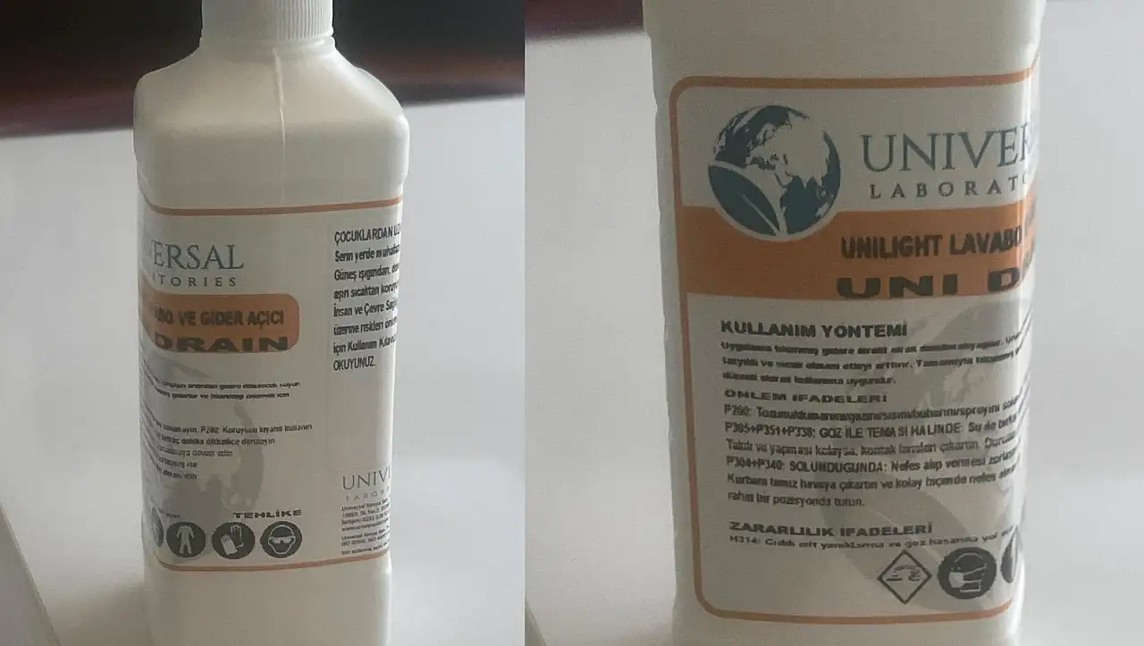 Üniversal Kimya Sanayi Ve Ticaret Anonim Şirketine ait Üniversal marka Uni Drain Unlight Lavabo Açıcı toplatılıyor. Ticaret Bakanlığı Güvensiz Ürün Bildirimleri listesinde yer alan bu ürününün kimyasal riski taşıdığı belirtiliyor. Güvensizlik nedeni, çocuk emniyetli kapatma düzeneği ile dokunsal uyarıların bulunmaması şeklinde açıklandı.