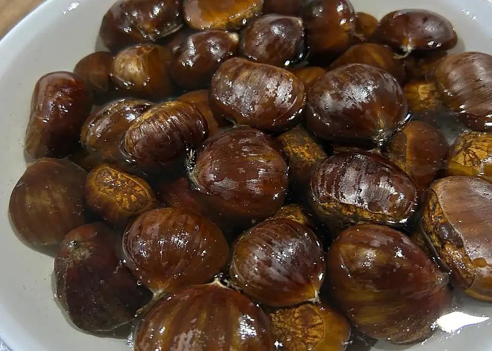 Kestaneleri çizmeden öncelikle sıcak suyun içerisinde yaklaşık olarak 20 dakika bekletmek kestanelerin kabuklarından ayrılmaları için yardımcı olacaktır. Su kaynar olabileceği gibi kaynama derecesine yakın bir su ısısında da olabilir.