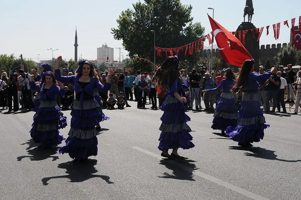 Tören, şiir dinletisi ve halk oyunu ekibinin gösterisinin ardından askerlerin geçişiyle son buldu.