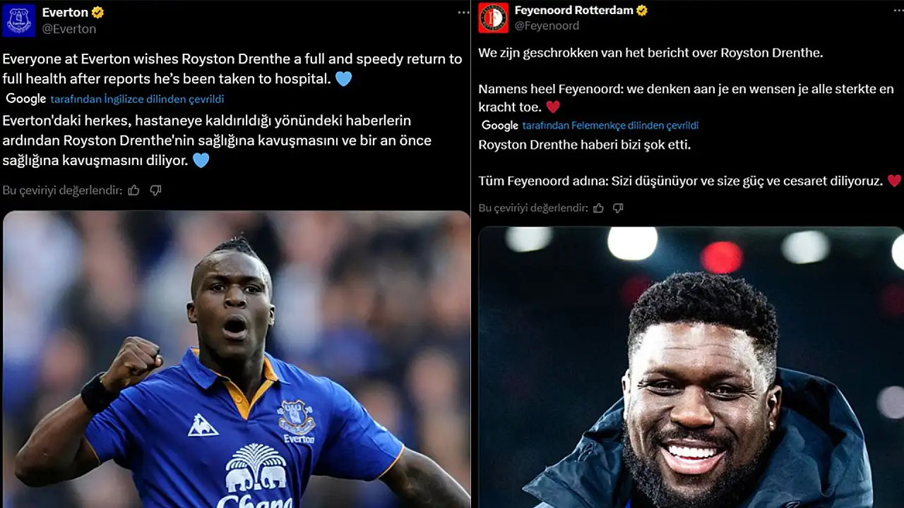 Daha önce forma giydiği takımlardan Royston Drenthe için geçmiş olsun mesajı paylaşıldı. Hollanda ekibi Feyenoord, eski futbolcusu Royston Drenthe için; "Haber bizi şoke etti. Tüm Feyenoord adına, seni düşünüyor ve sana güç ile cesaret diliyoruz.'' ifadelerini kullandı. İngiliz ekibi Everton ise “Everton’daki herkes, hastaneye kaldırıldığı yönündeki haberlerin ardından Royston Drenthe’nin tamamen iyileşmesini ve bir an önce sağlığına kavuşmasını diliyor.” şeklinde bir paylaşım yaptı.