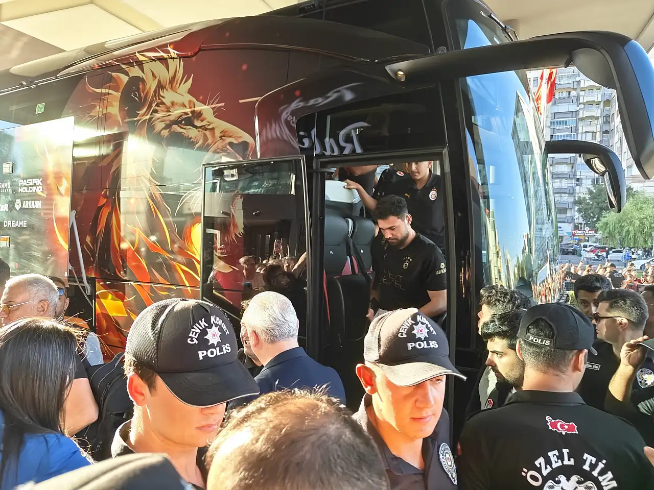 Galatasaray kafilesini taşıyan uçak Kayseri Havaalanı'na iniş yaparken, sarı-kırmızılılar geniş güvenlik önlemleri ile birlikte maç saatine kadar konaklayacağı otele hareket etti. Öte yandan çok sayıda taraftar, Galatasaray'ı otel önünde karşıladı.