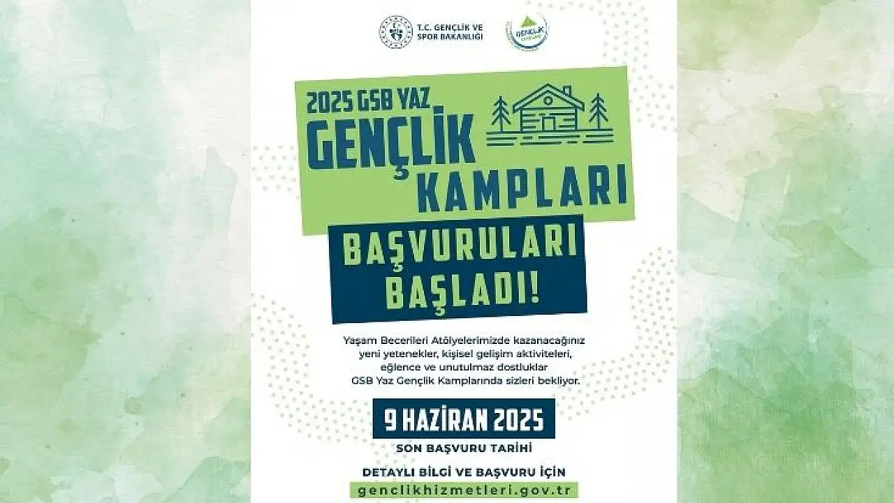 Başvurular 9 Haziran 2025 tarihine kadar devam edecek. Kamplara katılmak isteyen gençler, detaylı bilgiye ve başvuru formuna Gençlik ve Spor Bakanlığı’nın resmi internet sitesi olan genclikhizmetleri.gov.tr adresinden ulaşabiliyor.