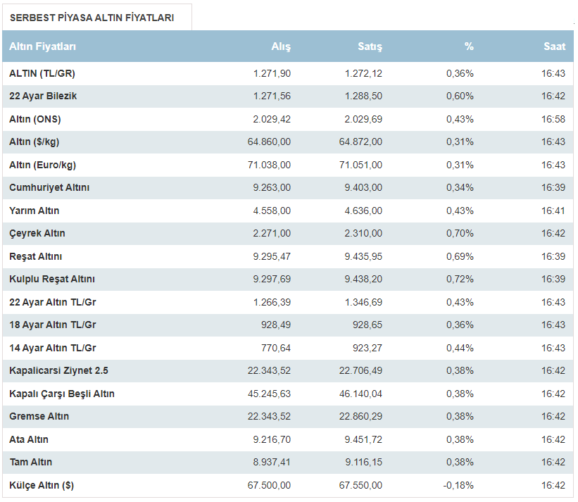 İşte 16:55 itibariyle altın fiyatları şu şekilde: