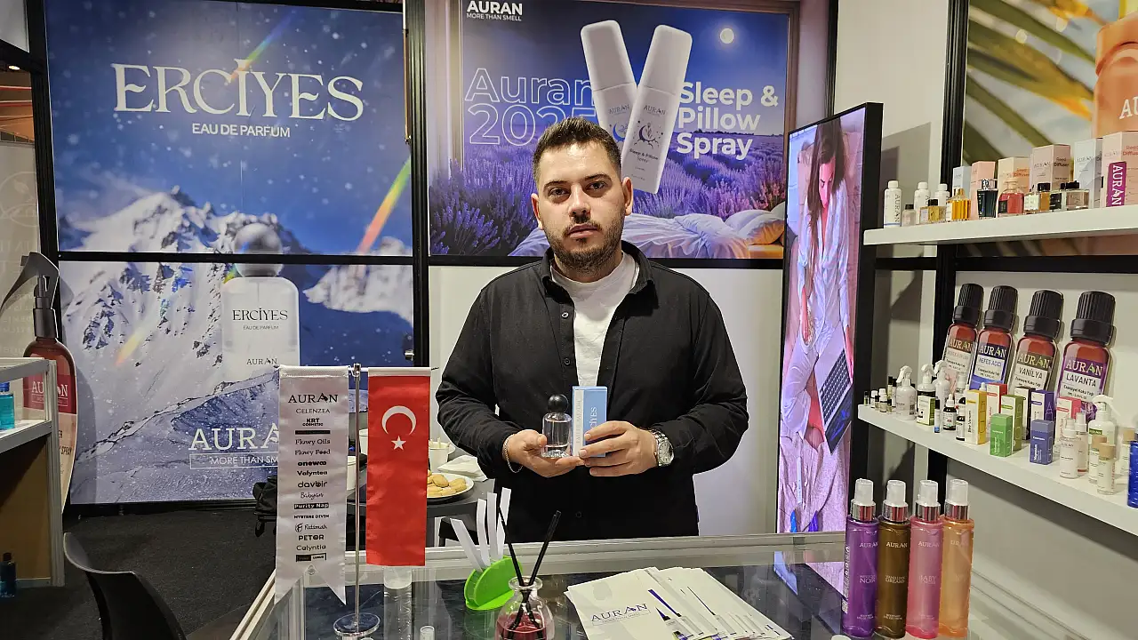 Kayseri'de açılan Güzellik Fuarı'nda Auran Kozmetik tarafından üretilen 'Erciyes' parfümü vatandaşların yoğun talebiyle karşı karşıya. Detaylar Kayseri Anadolu Haber'de...