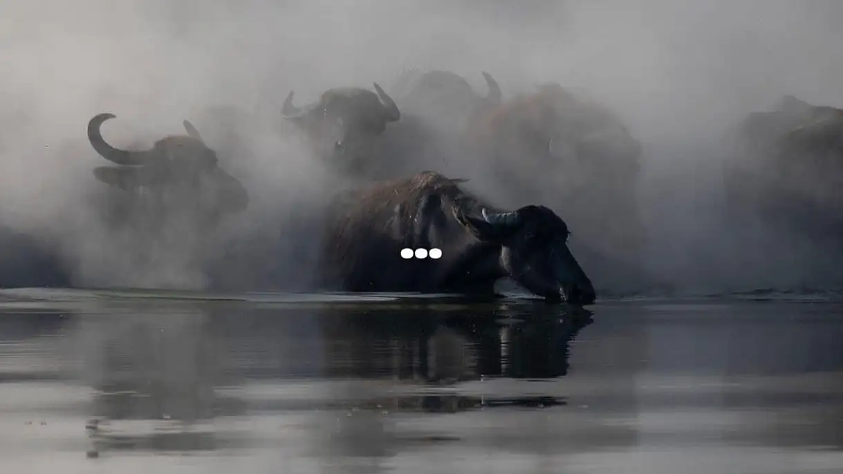 Kayseri'de Karpuzsekisi, Dokuzpınar ve Hürmetçi mahallelerinin başlıca geçim kaynağı olan mandaların, toplu halde Hürmetçi Sazlığı'nda yayıldıktan sonra dönüş yolundaki sulak alanda yaptıkları banyo izleyenleri büyülüyor.