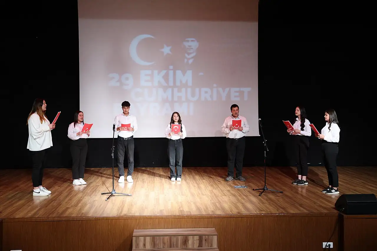 Saygı duruşu ve İstiklal Marşı’nın okunmasıyla başlayan programda, günün anlam ve önemini belirten konuşmalar yapıldı; öğrenciler tarafından şiirler okundu, oratoryo gösterisi ve Cumhuriyet temalı videolar ilgiyle izlendi.