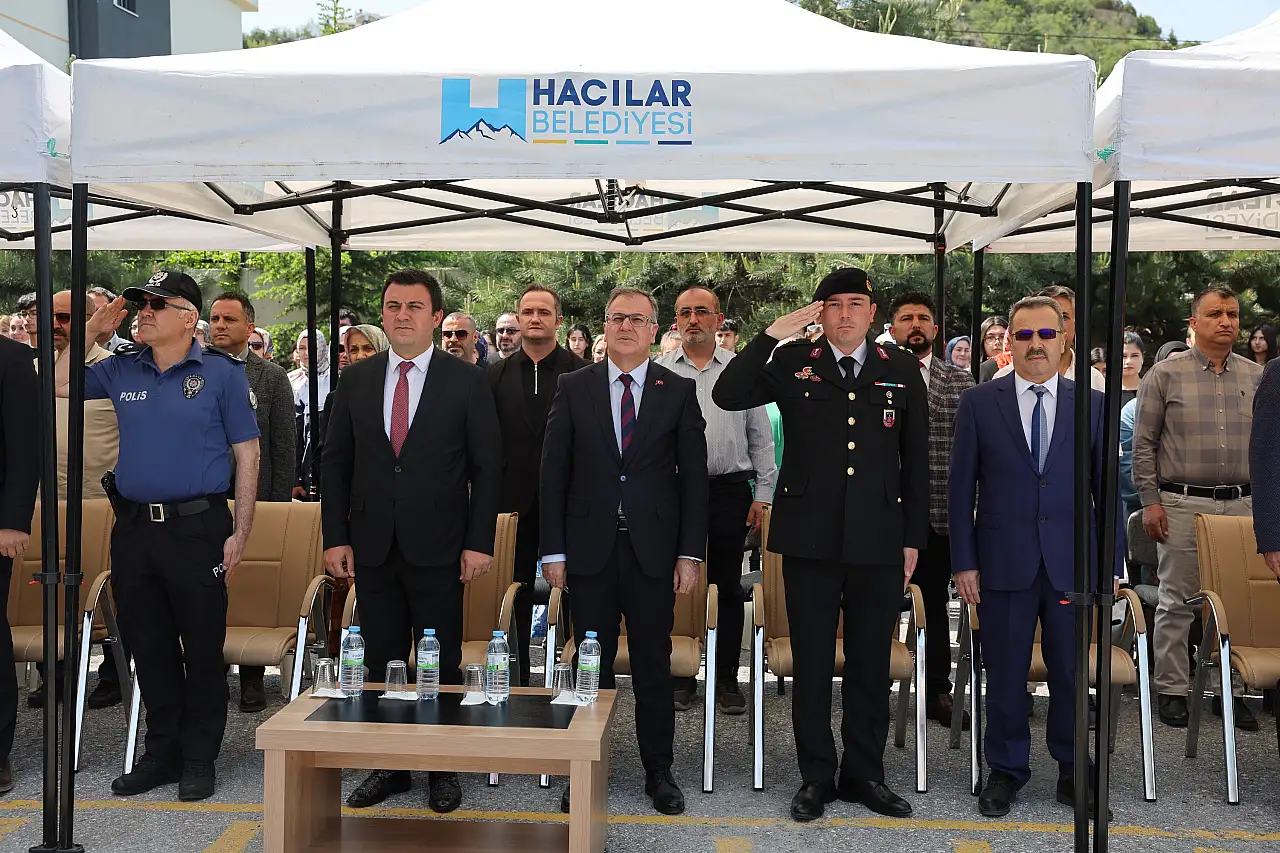 Baki Ayşe Simitçioğlu Anadolu Lisesi bahçesinde düzenlenen kutlama programına; Hacılar Kaymakamı Burak Dertlioğlu, Hacılar Belediye Başkanı Bilal Özdoğan, İlçe Jandarma Komutanı Üsteğmen Abdullah Yıldız, İlçe Emniyet Amiri Başkomiser Ramazan Bektaş, İlçe Milli Eğitim Müdürü Hacı Erdoğan, okul ve kurum müdürleri, öğretmenler, öğrenciler ve veliler katıldı.