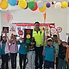 Hatay İl Emniyet Müdürlüğü'nde görevli polis memuru Tayyar Benden, Karayolu Trafik Haftası kapsamında ilkokul öğrencilerine trafik eğitimi verdi.