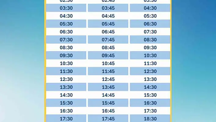 Güzergah sefer saatleri ise şu şekilde,
