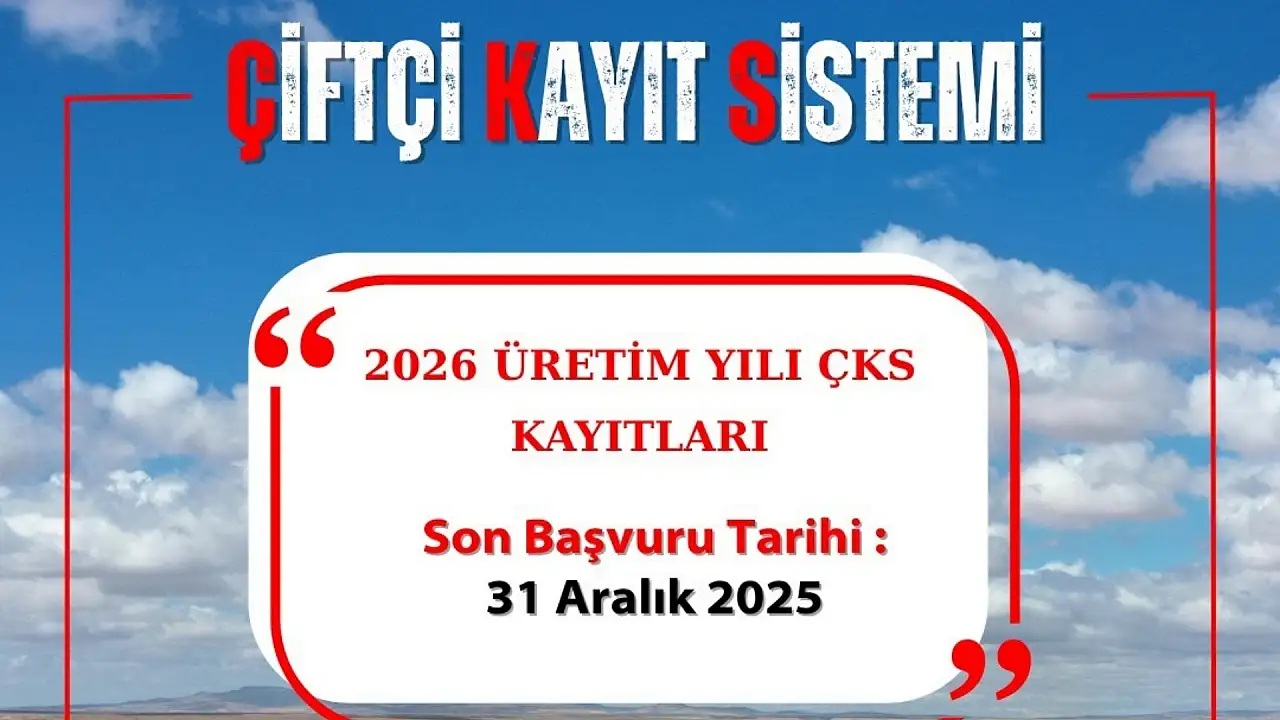 Kayseri İl Tarım ve Orman Müdürlüğü, 2026 üretim yılı için Çiftçi Kayıt Sistemi (ÇKS) başvurularının başladığını duyurdu. Yetkililer, çiftçilerin desteklemelerden yararlanabilmesi için kayıtlarını 31 Aralık 2025 tarihine kadar güncellemeleri gerektiğini bildirdi.