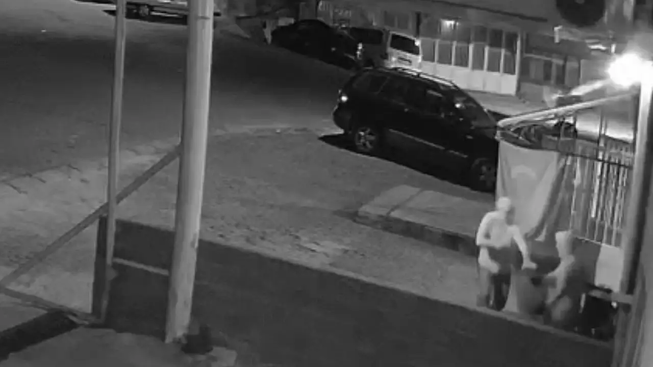 Dükkan önüne geldiğinde dükkan sahibinin geldiğini fark eden hırsız, dükkanın önünde bulunan buzdolabı motorunun arkasına saklandı. Bir anda dükkan sahibi ile karşı karşıya gelen maskeli hırsız, dükkan sahibi ile bir süre arbede yaşadıktan sonra kaçarak gözden kayboldu.