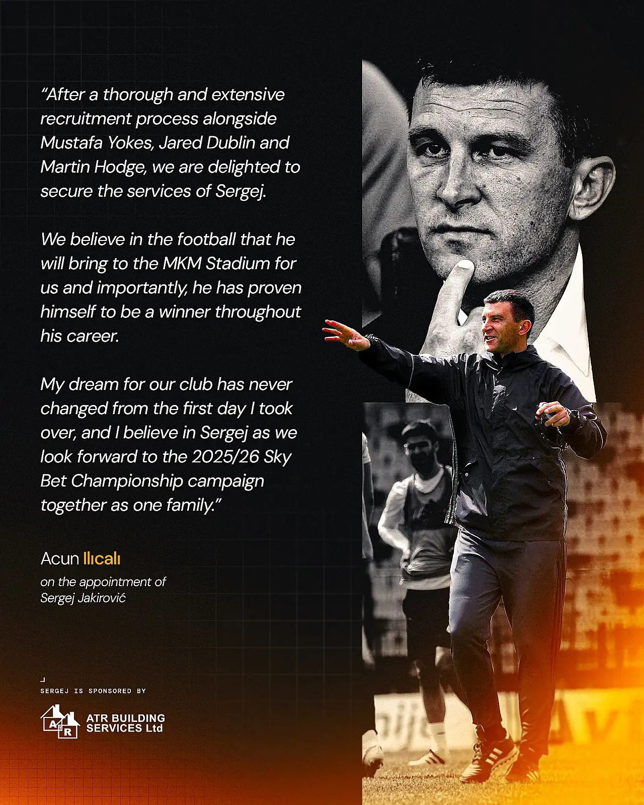 Kulübüm için hayalim, ilk günden bugüne hiç değişmedi ve Sergej'e inanıyorum. 2025/26 Sky Bet Championship sezonuna birlikte, bir aile olarak bakıyoruz."