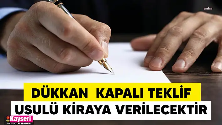 Mülkiyeti Belediyemize ait olup, Tekir Yaylası Bölgesinde bulunan 38/AD nolu dükkan 2886 sayılı Devlet İhale Kanununun 37. maddesi gereğince yapılacak “Kapalı Teklif Usulü” ihale ile 10 yıllığına kiraya verilecektir.