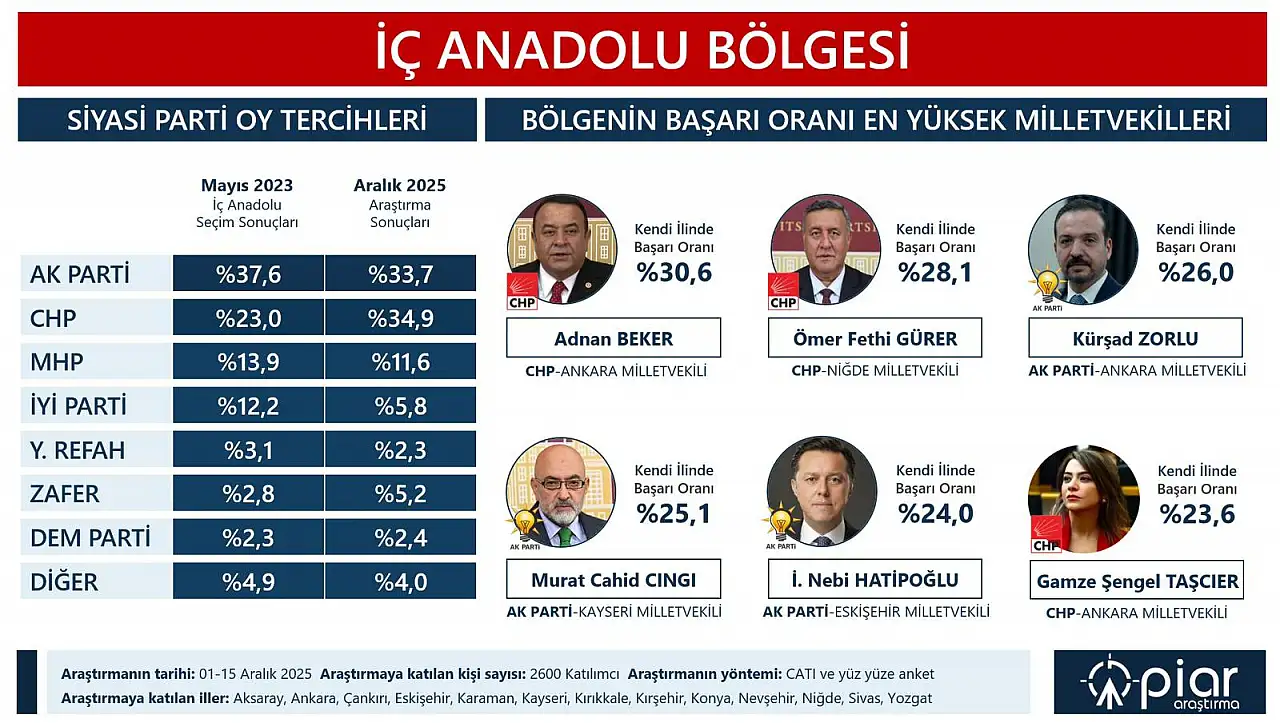 İç Anadolu'nun en başarılı milletvekilleri arasında Kayseri'den hangi vekil yer aldı?