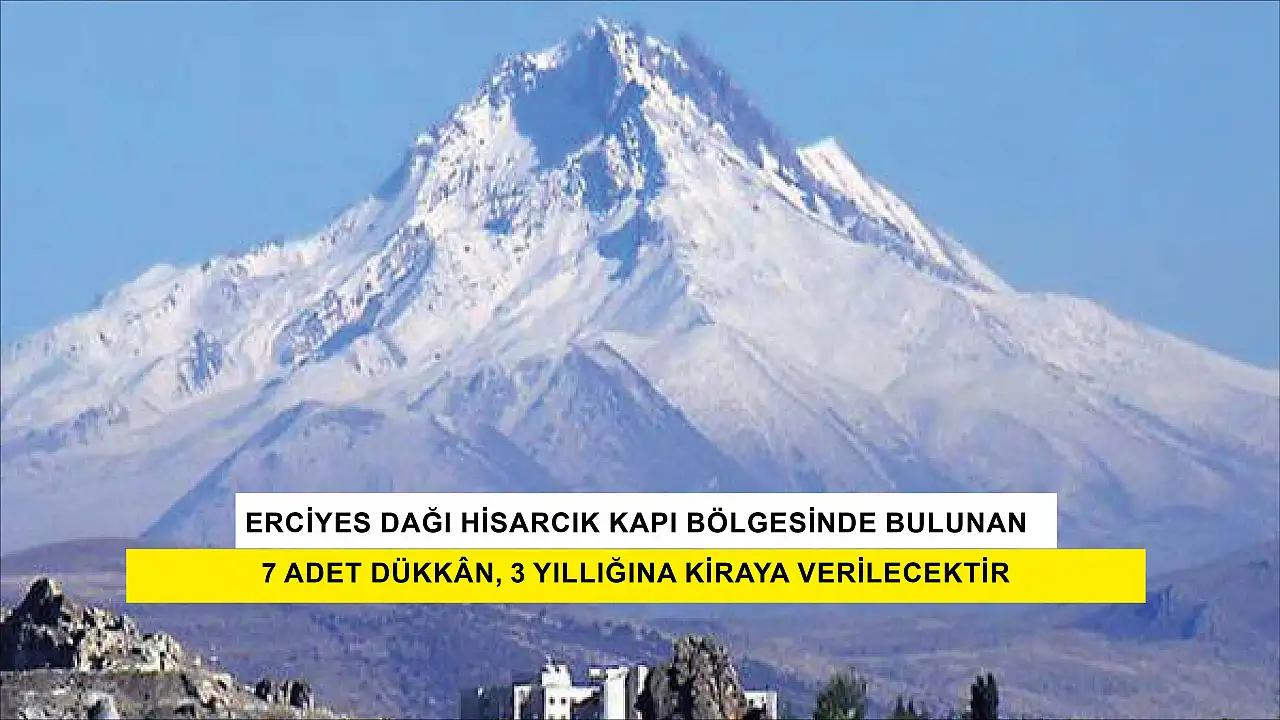 Erciyes Dağı Hisarcık Kapı Bölgesinde bulunan 7 adet dükkân, 2886 Sayılı Devlet İhale Kanununun 45. maddesi gereğince yapılacak “Açık Teklif Usulü” ihale ile ayrı ayrı 3 yıllığına kiraya verilecektir.