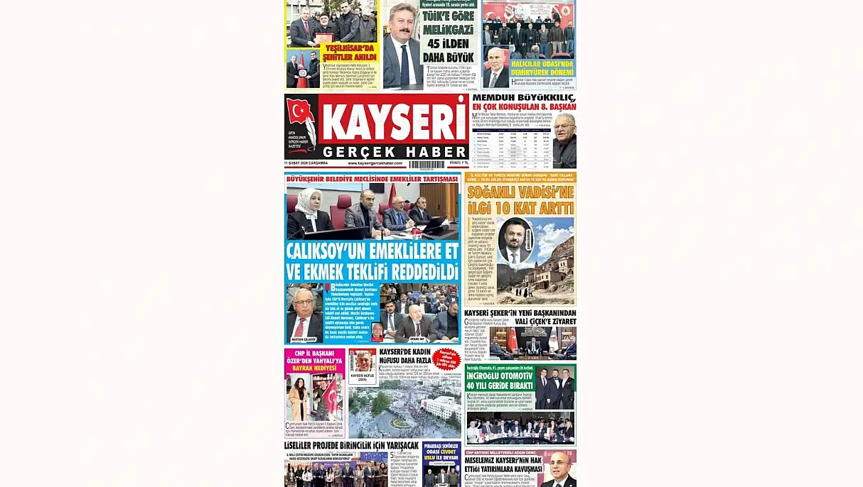 Gerçek Haber manşetinde ‘Çalıksoy’un Emeklilere Et ve Ekmek Teklifi Reddedildi’ başlığı ile Kayseri Büyükşehir Belediyesi Meclis Toplantısı’na yer verdi. CHP’li Mustafa Çalıksoy toplantıda emekliler için meclise sunduğu ayda bir kilo et ve günde dört ekmek teklifi reddedildi. Büyükşehir Belediye Meclisi Başkanvekili Ahmet Bostancı tarafından yönetilen toplantıda Bostancı, ‘Bu teklifi oylamaya bile gerek duymuyorum’ dedi. Konu meclis üyeleri arasında tartışmaya neden oldu.