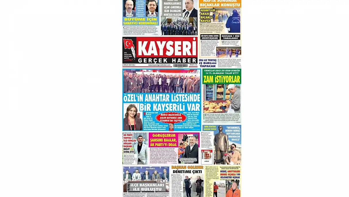 İşte Kayseri Gazetelerinde 2 Aralık Salı gündemi…
