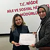 Program sonunda, eğitimi veren Doktor Öğretim Üyesi Özlem Tümer’e katkılarından dolayı Niğde Aile ve Sosyal Hizmetler İl Müdürlüğü Şube Müdürü Aynur Karadan tarafından teşekkür belgesi takdim edildi.