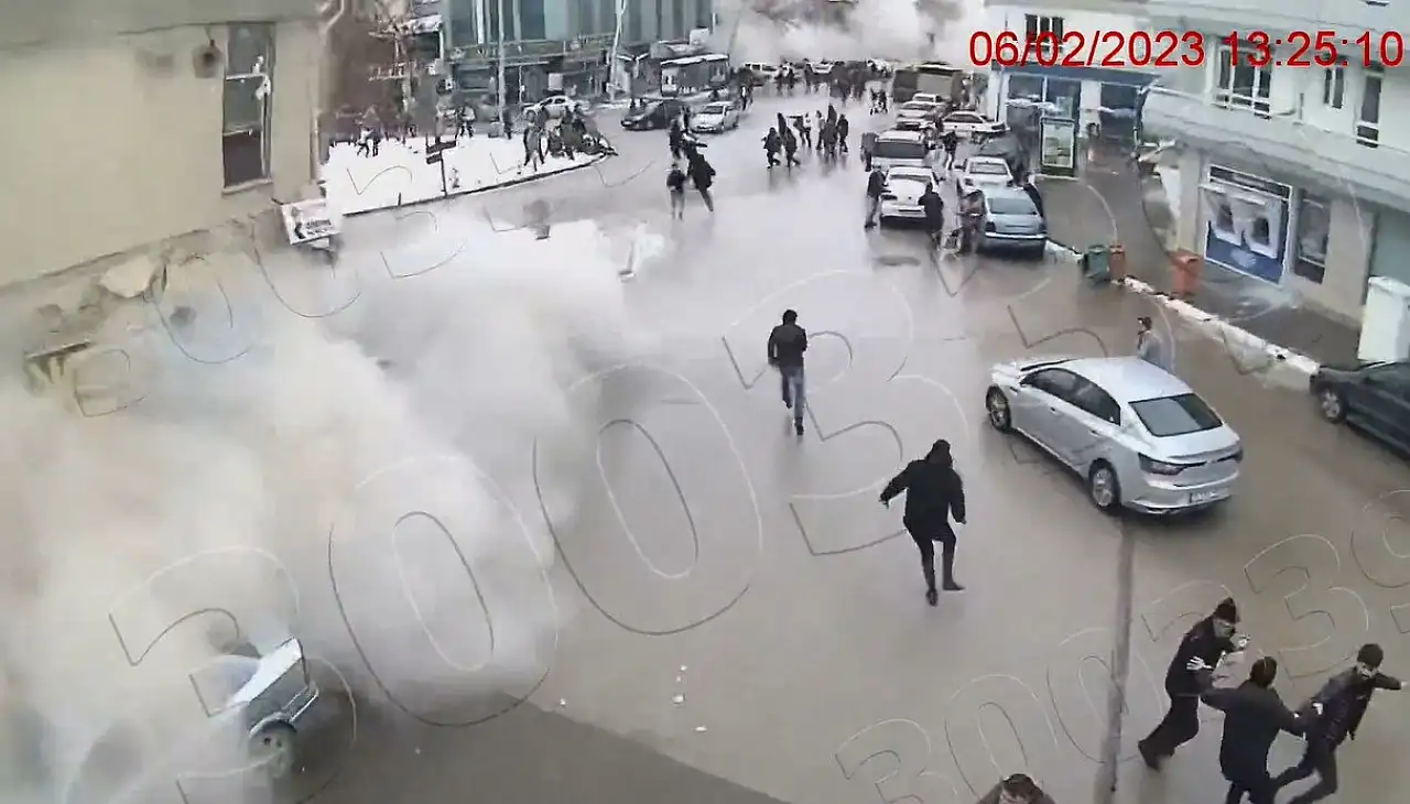 Görüntülere, bazı binaların büyük bir gürültüyle çöktüğü, çöken yapıların çevresinde yoğun toz bulutunun oluştuğu ve yollara beton parçalarının savrulduğu yansıdı. Depremin etkisiyle çevrede bulunan iş yerlerinin camlarının kırıldığı, tabelaların sallandığı ve çevrede kısa sürede büyük bir kargaşa yaşandığı da kaydedildi.