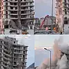 Öte yandan, yıkım çalışması sırasında binanın çökme anı görüntüleri ortaya çıktı. Cep telefonuna kamerasına yansıyan görüntülerde binanın bir anda çöktüğü ve çevreyi toz bulutunun sardığı anlar yer aldı.