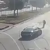 Kazaya ilişkin görüntüleri ortaya çıktı. Görüntülerde otomobilin hızla ilerlediği ve yaya geçidinden yolun karşısına geçmeye çalışan kadına otomobilin çarptığı görüldü.